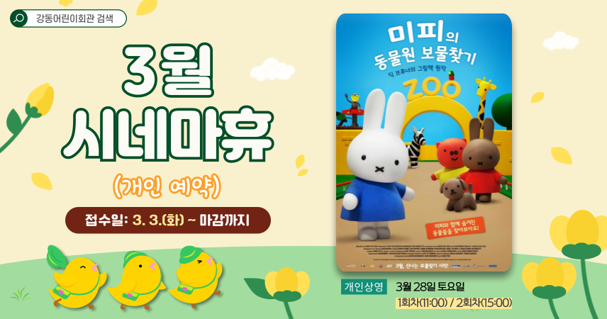 강동어린이회관 2026년 설 연휴 운영안내드립니다.강동어린이회관은 매주 화~토, 9시~18시 운영하고 있습니다.따라서2026. 2. 14.(토) ...
